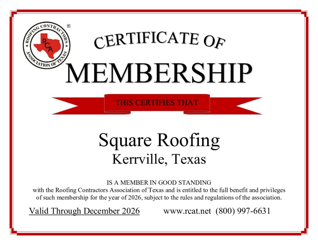 The State of Texas has no oversight or guidelines for roofing contractors. One of our better resources is the Roofing Contractors Association of Texas (RCAT), a statewide trade association. Square Roofing is a proud supporter of RCAT.